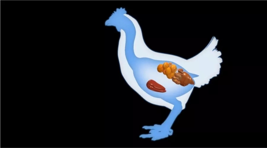 蛋雞的泄殖腔很短,雞蛋在此短暫停留后排出體外。