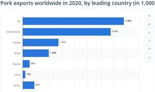 (圖:2020年全球主要豬肉出口國出口量預(yù)測)